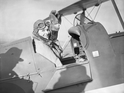 Pauline Gower, Commandant of the Air Transport Auxiliary Women's Section, waving from the cockpit of a de Havilland Tiger Moth at Hatfield, Hertfordshire, prior to a delivery flight, 10 January 1940.