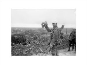 Men of 137th Brigade, 46th Division, are addressed by Brigadier General J C Campbell VC CMG DSO on the Riqueval Bridge after breaking the German's Hindenburg Line defences on 29 September 1918.