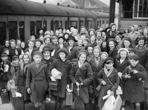 A group of evacuees from Bristol arrive at Brent railway station near Kingsbridge in Devon during 1940.