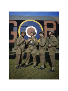 Royal Air Force armourers check over the sixteen 250lb bombs before they are loaded into Short Stirling bomber N6101
