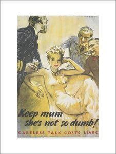 Created in 1941 by Harold Forster, an artist noted for his illustrations on pre-war Black Magic chocolate boxes, KeepMum SheÂs Not so Dumb is typical of Second World War British propaganda attempts to instil caution in the public through humorous,memorable slogans, rather than through fear-inducing images of spies and saboteurs. Today, of course, this particular slogan appears ratherchauvinistic.