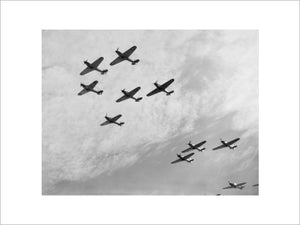 A Heinkel He 111 bomber flying over the East End of London at the start of the Luftwaffe's evening raids of 7 September 1940.