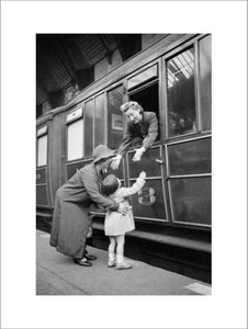 Vera Elliott says good bye to her daughter Heather and her foster mother Mrs Smith from the window of a train as she sets off from Sunderland railway station to begin her war work.