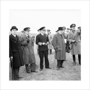 Winston Churchill with his scientific advisor Lord Cherwell (extreme left), Air Chief Marshal Sir Charles Portal and Admiral of the Fleet Sir Dudley Pound, watching a display of anti-aircraft gunnery, June 1941.