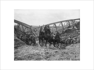 Horse team of the Royal Field Artillery pulling an 18 pounder field gun near Moeuvres, 27 September 1918.